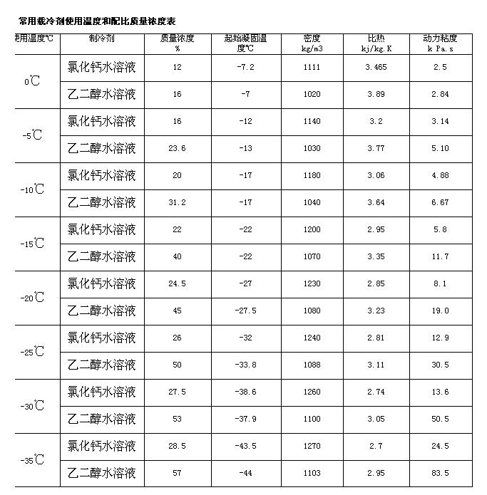 下面是各種冰水機用低溫載冷劑的配置表,相關文章請到低溫載冷劑乙二醇的配比表查看!