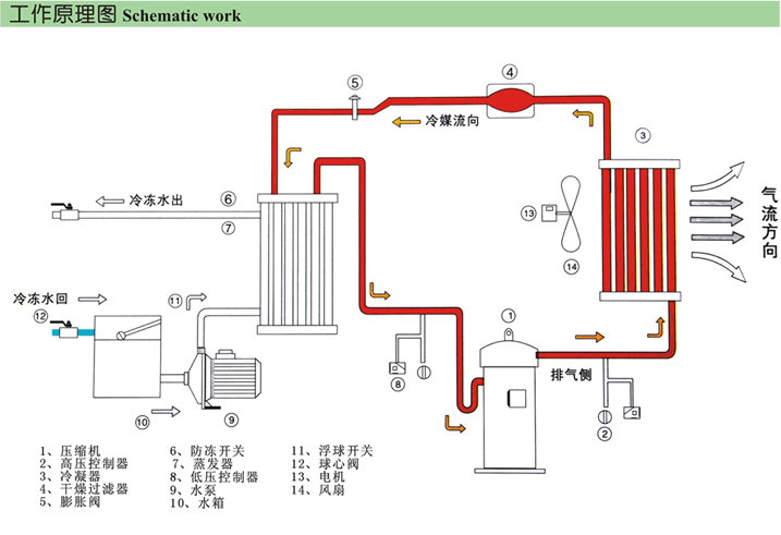 風冷式工業冷凍機組技術資料之工作原理圖如下